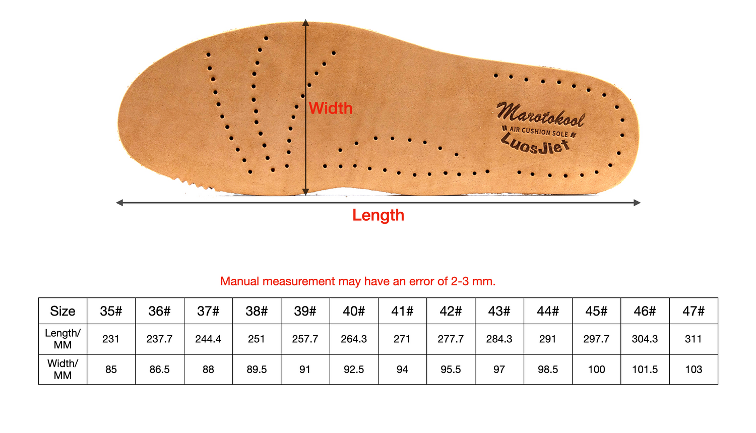 If you have the standard Brannock Size(US Size), you can easily calculate your Luosjiet Size through your Brannock Size. Generally, local American retro boot stores will have Brannock Sizemeasurement services (such as Redwing stores, etc.); please be sure to find a professional to help you measure. Only based on accurate measurement data can you choose the accurate size; please don't use non-professional hands by yourself. Measure your own foot data, which will only cause you to choose the wrong size.